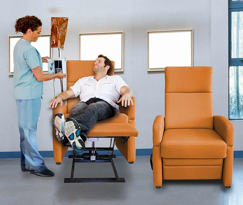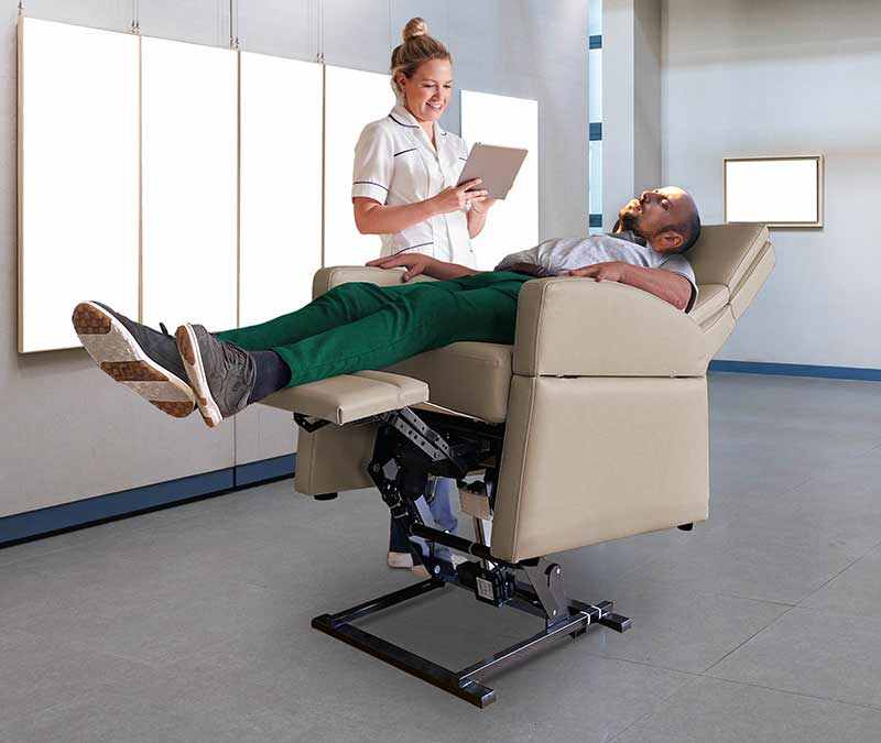 Ob bei Blutdruckmessung oder Blutabnahme, Dialyse oder Infusionen, dem Anpassen von Hilfsmitteln oder dem Transfer zwischen Stationen – der mobile Hebesessel bietet alles in einem. Fachkräfte werden körperlich entlastet und können rückenschonend arbeiten, Patienten haben die Möglichkeit, durch elektrisch höhenverstellbare Sitz- und Liegepositionen auch lange Verweilzeiten komfortabel und entlastend zu variieren.