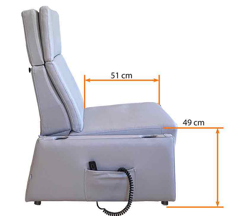 Mit geringem Gefälle erleichtert das Sitzpolster selbst ohne Motor das Aufstehen. Dazu ermüdet das Sitzen in einem Sessel mit geringerem Gefälle weniger. Die Muskulatur wird aktiviert und die Körperspannung erhalten.