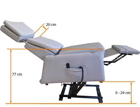 Ob eigene Wohnung oder Seniorenresidenz: der ergonomische Sessel mit Höhenverstellbarkeit hilft älteren Menschen dabei, mobil und selbstbestimmt zu leben. Seine elektrische Bedienung sorgt dafür, dass man keine Körperkraft benötigt, um in eine erhöhte Sitz- oder Liegeposition zu wechseln. So behagliche wie fleckresistente Bezugsmaterialien lassen auch Begleiterscheinungen des Alters wie Inkontinenz nicht zum Problem werden.